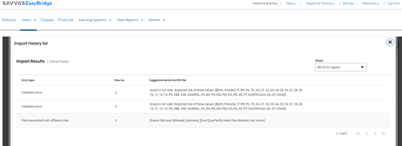 Field could not be updated: The Savvas userID is not found in EasyBridge. If updating an existing user, make sure the Savvas userID is populated correctly for that user.