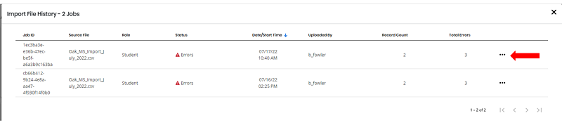 - Select the ellipses at the end of the row that failed and select View details to view the Import Results.
