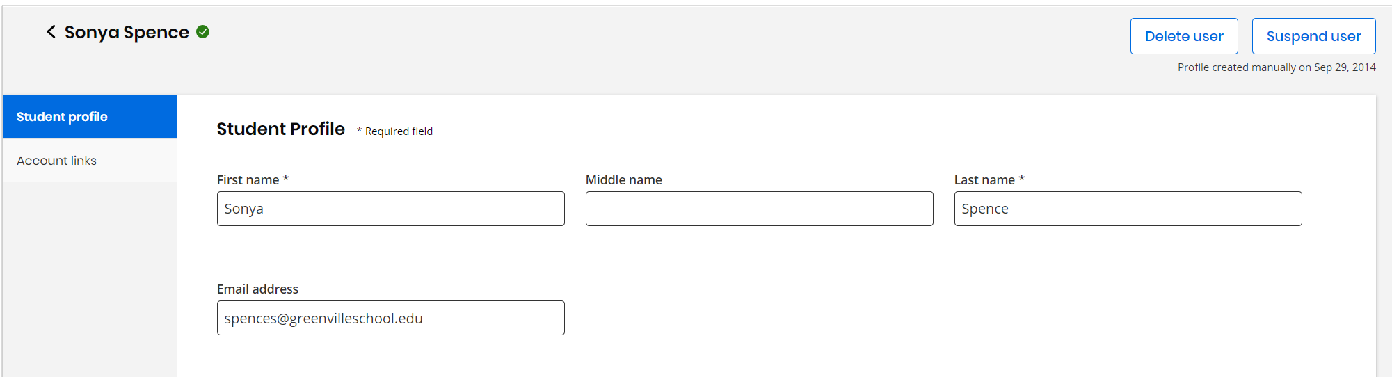 Fields that are grayed out cannot be edited. This information comes directly from the SIS, which is the system of record. Changes to those fields must be made directly through the organization's Student Information System (SIS). Fields marked with an asterisk are required fields and cannot be left blank.