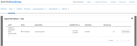 Administrators have access to import/export history that correlates to their organization permissions. School administrators see history for just their schools, while district administrators see history for all schools.