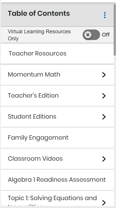 A program is a product your school or district has purchased. contains a Table of Contents (TOC).